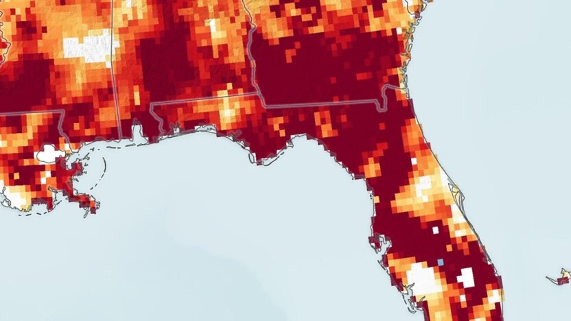 However, the current drought does not yet rival the worst drought that has parched the state, according to data from the U.S. Drought Monitor. Their analysis indicates that the 2000–2001 drought was more intense, lasted longer, and affected a larger area. GRACE-FO observations are among the sources of information that the U.S. Drought Monitor considers when mapping drought conditions in its weekly assessments. Forecasters anticipate that a slow-moving rainstorm set to hit Florida this week may offer some relief.