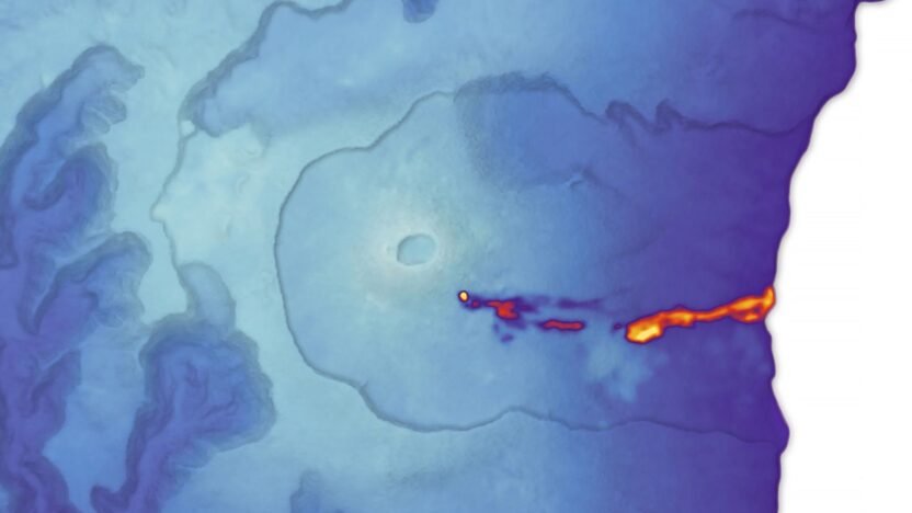 “The hottest areas, shown as the brightest tones, correspond to the eruptive vent, the active lava channel, and the flow front,” said Adele Campus, a University of Turin volcanologist. From the vent, lava flows downslope for several kilometers, often through lava tubes. “The places where lava re-emerges at the surface through breakouts appear as localized hotspots,” she added. Campus and colleagues analyzed more than two decades of NASA and NOAA satellite observations in a 2025 study, identifying key trends and patterns in the volcano’s thermal activity and rate of lava effusion.
