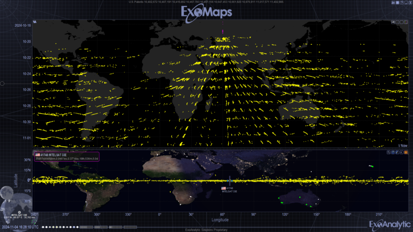IS-33E failed suddenly aaround 4:32 UTC on Oct. 19, 2024. ExoAnalytic and others confirmed a major breakup event. Over the following two weeks, our sensors tracked hundreds of debris fragments, and we now assess the total population to exceed 1,000 pieces. This was not a hypothetical Kessler cascade — it was a real, present-day GEO fragmentation with real risk to operators across longitudes.